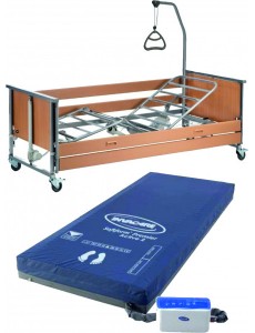 Cama articulada com funções elétricas de elevação e articulação (elevação do encosto, articulação dos joelhos).Colchão hospitalar + sobre-colchão preventivo de úlceras por pressão, mais (ou também) conhecido com colchão anti-escaras. É indicado para situações transitórias em que o utilizador está em recuperação e tem necessidade de prevenir as úlceras por pressão. É ideal para colocação numa cama ..