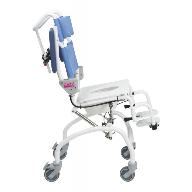 BALTIC MI é uma cadeira de banho e sanitária, em aço inoxidável, para crianças com dificuldades motoras. Com báscula e apoio de cabeça, permite posicionar a criança com total conforto e em segurança. Basculação até 35º. Assento regulável em altura (em 10cm), com abertura sanitária (opção: sem abertura sanitária). Aparadeira removível. Apoia braços rebatíveis para facilitar as transferências. Apoia pés reguláveis em altura e destacáveis. Cadeira com 4 rodas de 100mm, com travão. Cinto pélvico. Materiais resistentes à limpeza e desinfeção.